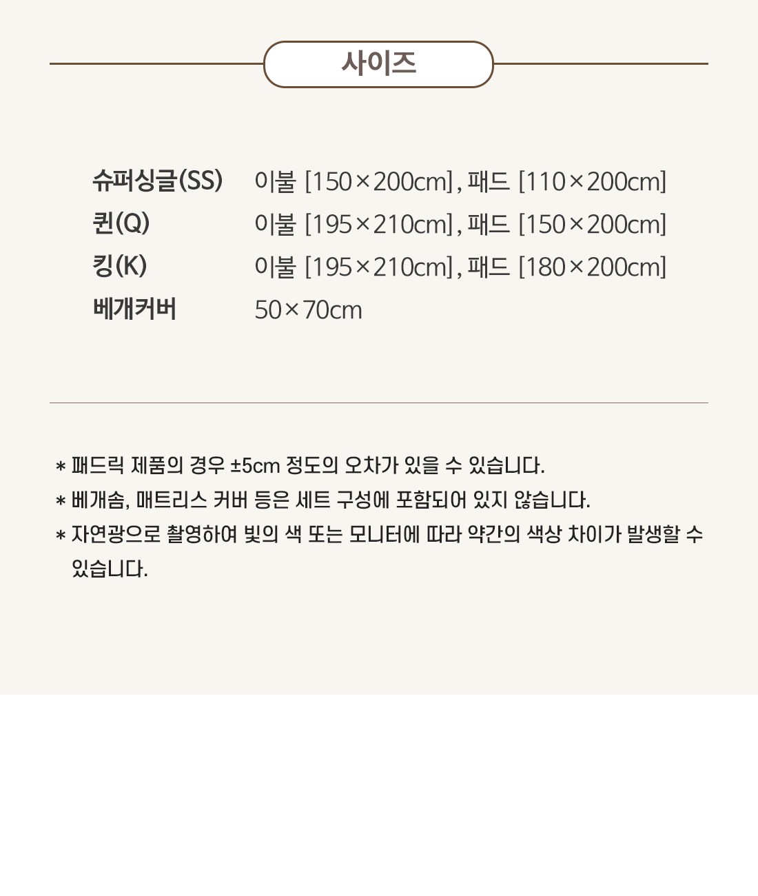- 사이즈: 슈퍼싱글