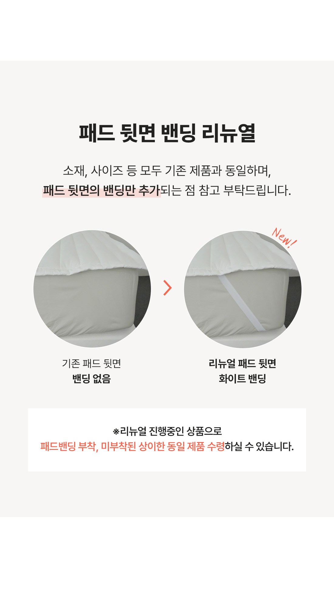 ※ 리뉴얼 진행중인 상품으로 본품 디자인(패드 뒷면 밴딩 유무)이 상이한 동일 제품을 수령하실 수 있습니다.