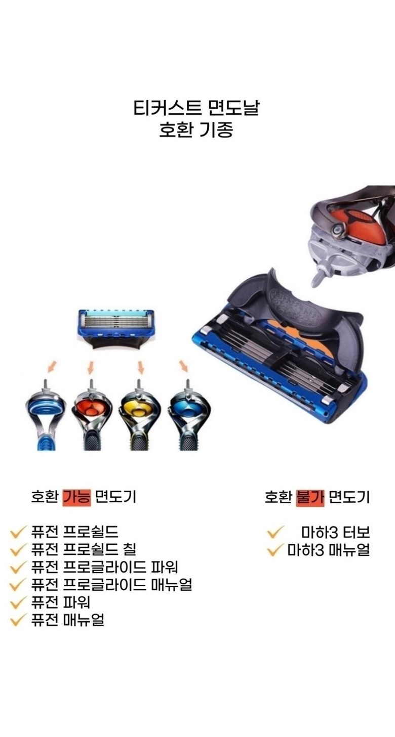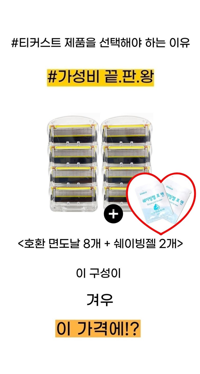 | 품명 및 모델명 | 티커스트 질레트 프로쉴드 옐로우 호환 면도날 8개입, 1세트 | 인증/허가 사항 | 해당없음 |