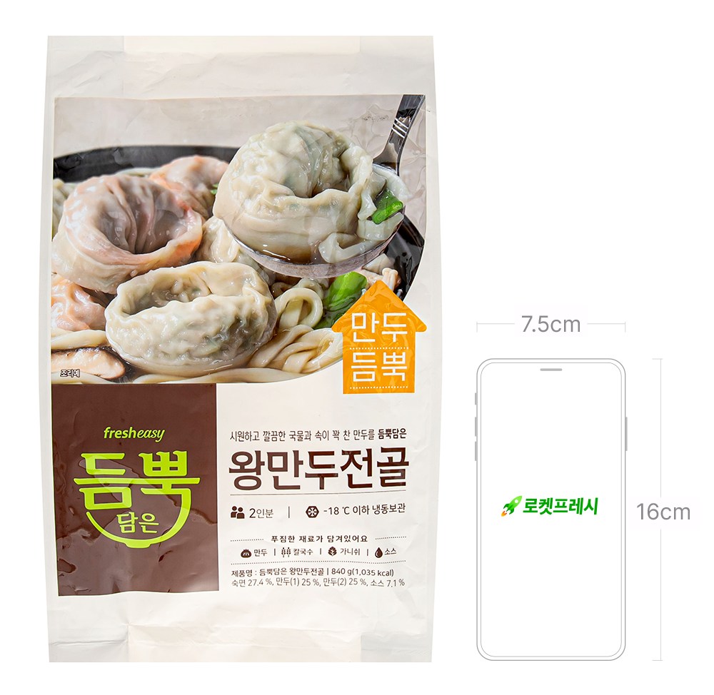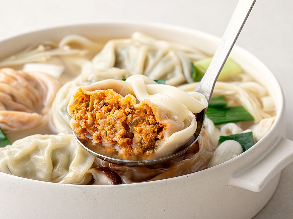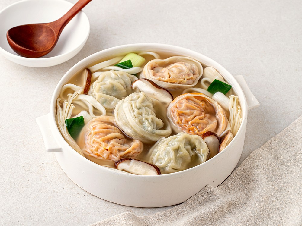 시원하고 깔끔한 국물이 일품인 만두전골을 만들어보세요. 필요한 재료가 모두 동봉돼 있어 손쉽게 완성할 수 있지요. 속이 꽉 찬 만두를 갈라 국물에 촉촉하게 적셔 즐겨보세요. 쫄깃한 칼국수면까지 호로록 먹으면 배가 든든하게 채워진답니다.