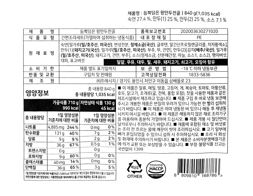 | 생산자 및 소재지 | 컨텐츠 참조 | 제조연월일, 소비기한 또는 품질유지기한 | 소비기한(또는 유통기한) : 2026년 07월 13일 이거나 그 이후인 상품 제조년월일 : 2025년 11월 16일 이후인 제조상품 |