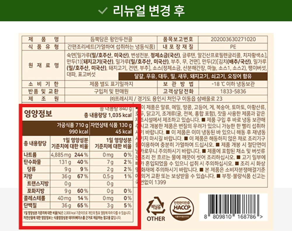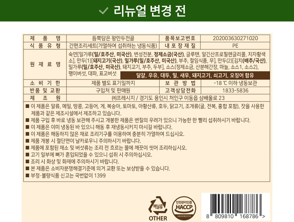 | 제품명 | 컨텐츠 참조 | 식품의 유형 | 컨텐츠 참조 |