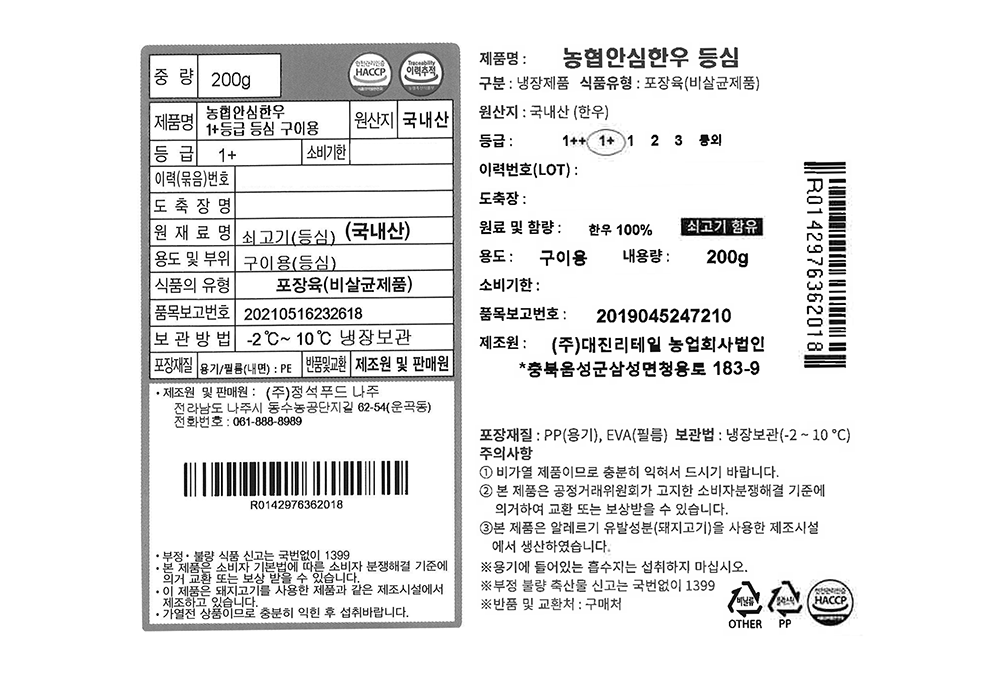 | 소비기한 또는 품질유지기한 | 소비기한(또는 유통기한) : 2026년 03월 11일 이거나 그 이후인 상품 | 세부 품목군별 표시사항 | 축산물 등급표시: 1+등급 / 이력번호 표시유무 - 이력번호 표시제품임 |