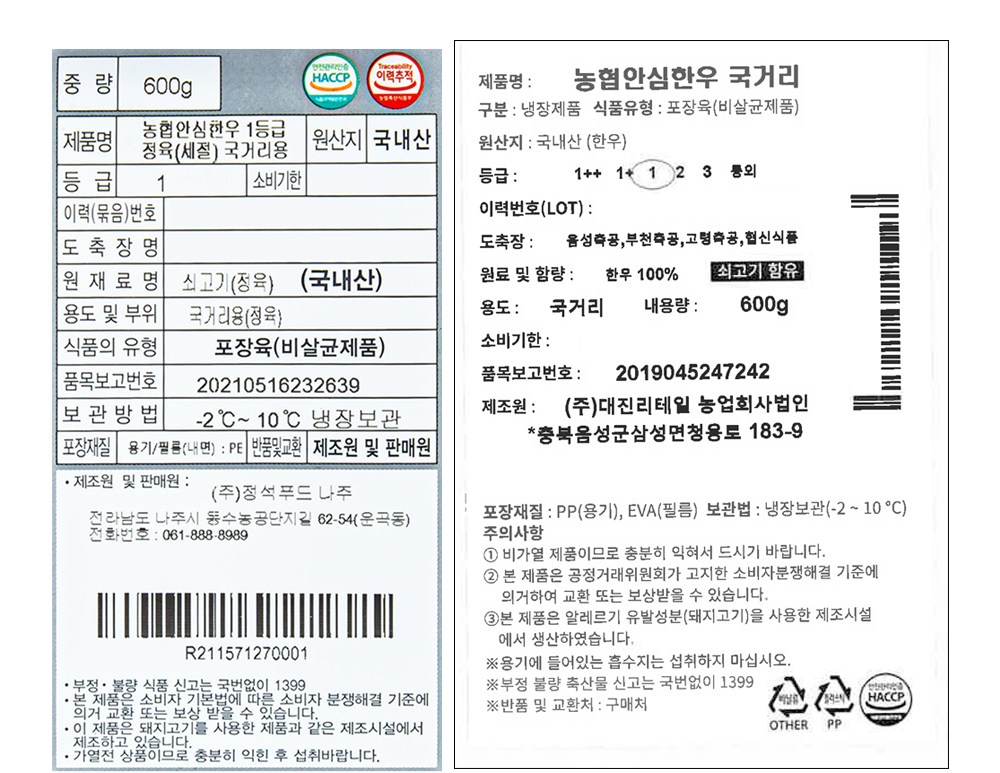 | 제조연월일, 소비기한 또는 품질유지기한 | 소비기한(또는 유통기한) : 2026년 03월 11일 이거나 그 이후인 상품 제조년월일 : 2026년 02월 25일 이후인 제조상품 | 세부 품목군별 표시사항 | 축산물 등급표시 : 1등급 / 이력번호 표시유무 : 이력번호 표시제품임 |