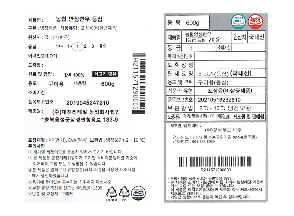 축산물 이력관리 상품