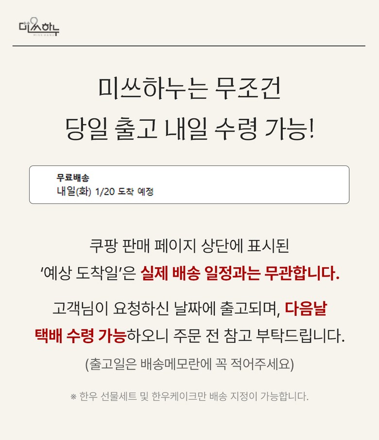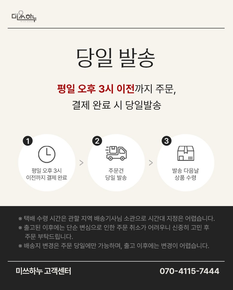 - ㆍ모니터 해상도의 차이로 인해 색상이나 이미지가 실제와 달라, 고객이 단순 변심으로 교환/반품을 무료로 요청하는 경우