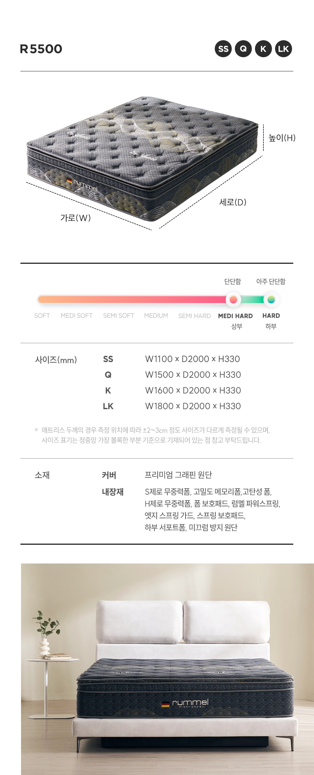 | 품명 | 럼멜 블랙그래핀 메모리폼 스프링 침대 매트리스 330mm R-5500 방문설치 | KC 인증정보 | 업체미제공 |