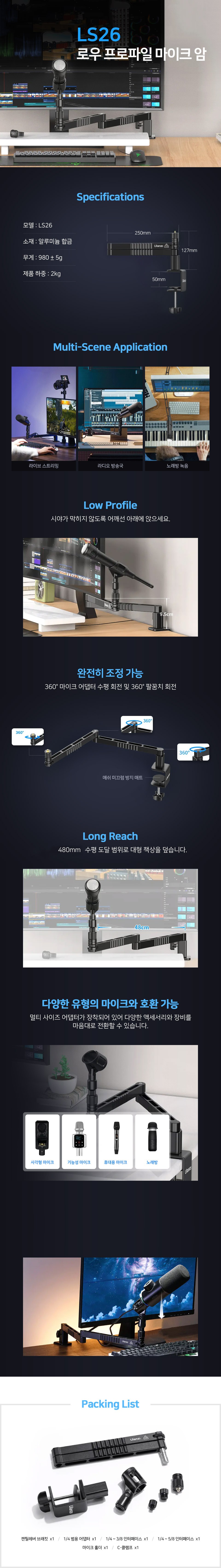 | 품명 및 모델명 | 울란지 데스크용 로우 프로파일 앵글 마이크 거치대/ LS26 | 인증/허가 사항 | 해당없음 |