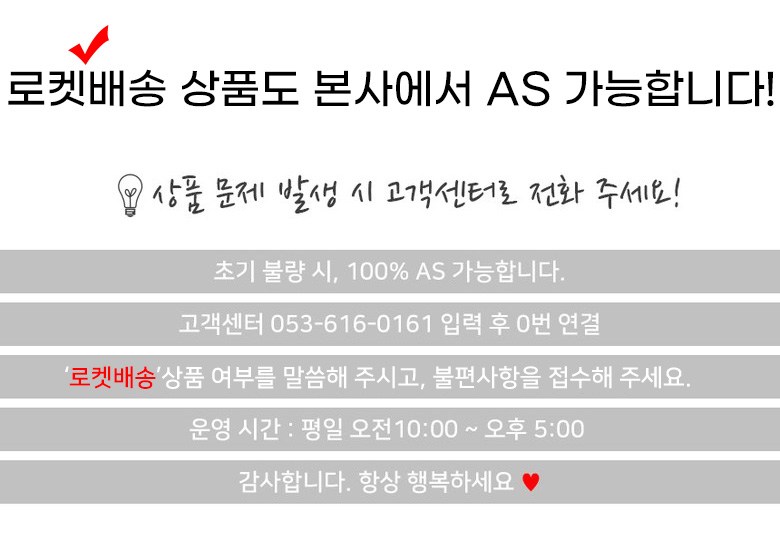 - ㆍ모니터 해상도의 차이로 인해 색상이나 이미지가 실제와 달라, 고객이 단순 변심으로 교환/반품을 무료로 요청하는 경우