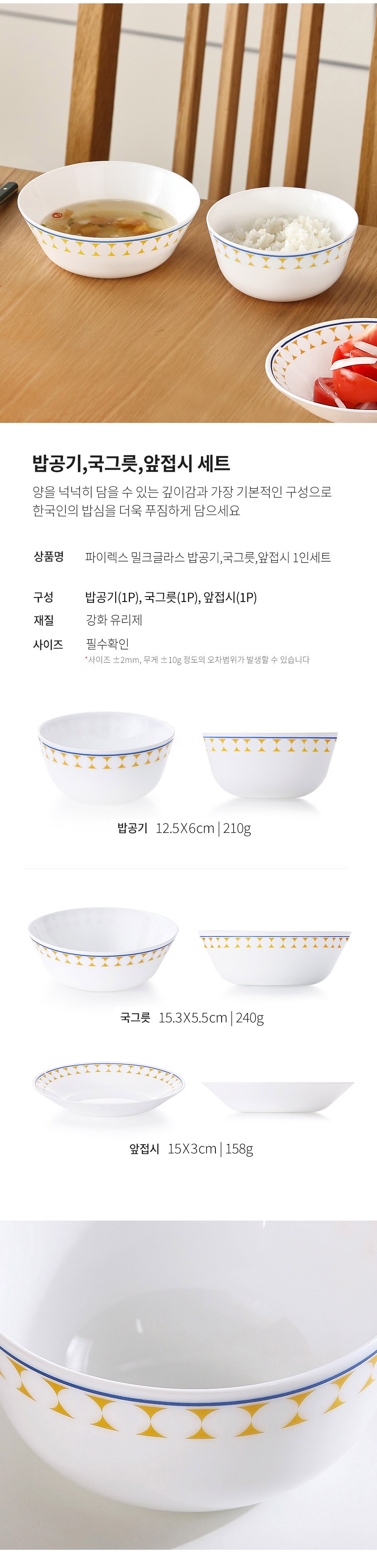| 구성품 | 밥공기+국그릇+앞접시 | 크기 | 컨텐츠 참조 |
