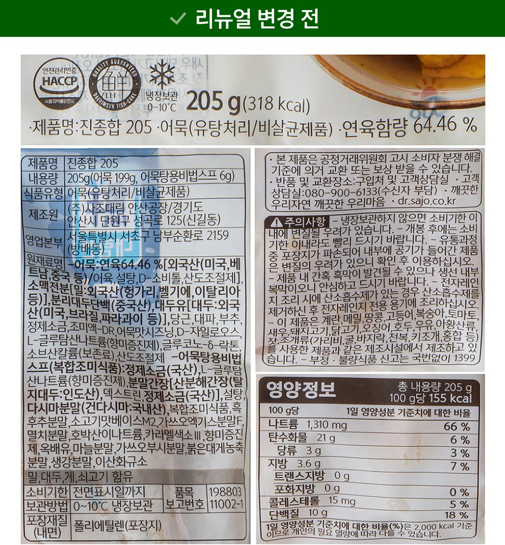 | 제품명 | 컨텐츠 참조 | 식품의 유형 | 컨텐츠 참조 |