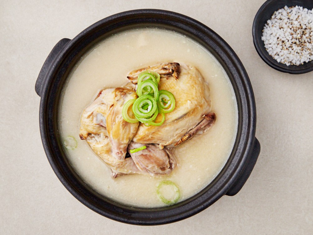 재료: 통닭 1마리, 찹쌀, 통마늘 5쪽, 소금 약간, 대추 4개, 황기 1뿌리, 인삼 1뿌리