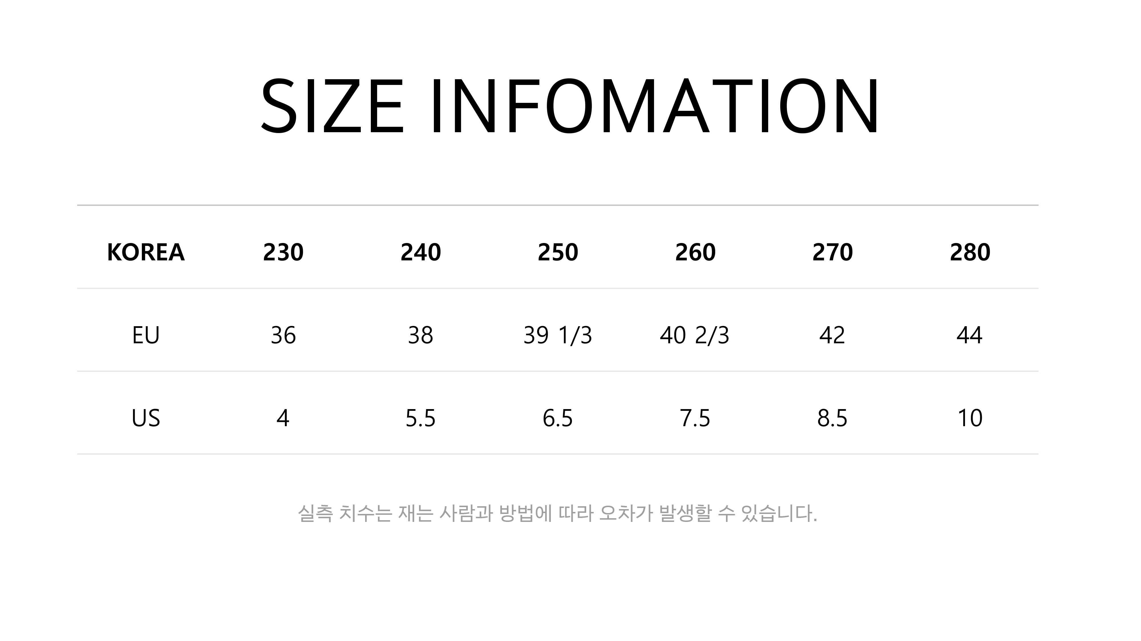 | 제조국 | 인도네시아 | 취급시 주의사항 | - 제품의 파손 및 변형 방지를 위해 기름이나 염화칼슘이 있는 곳에서는 착화를 피하시고 직사광선 및 열원(화기, 기계건조 등)에 주의하십시오. 더운날씨에는 차안, 고온다습한 장소에 보관할 경우 신발 모양이 변형될 수 있습니다. - 짙은 색상의 제품은 물기, 마찰에 의해 이염현상이 발생될 수 있으므로 밝은 색상의 양말, 의류 등과 착용 시 주의하시기 바랍니다. |