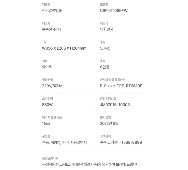 | 품명 및 모델명 | 상품 상세페이지 참조 | 인증/허가 사항 | 상품 상세페이지 참조 |