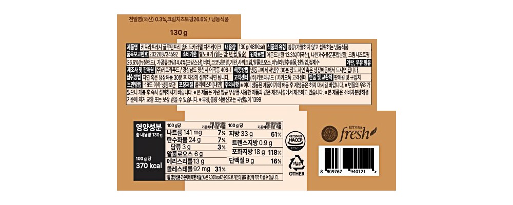 아몬드분말, 크림치즈, 천일염 함유