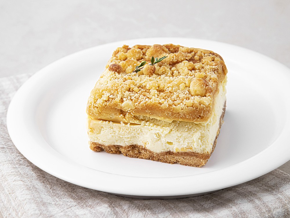 천일염을 더한 솔티드카라멜 치즈케이크예요. 순간의 짭조름한 풍미가 달콤함을 더욱 감미롭게 만들지요. 바삭하고 부드러운 식감을 모두 지녀 먹는 재미를 선사한답니다. 향긋한 커피나 고소한 우유를 곁들여 즐겨보세요. 늘 가고 싶던 고급스러운 카페에 온 기분이 들 거예요.