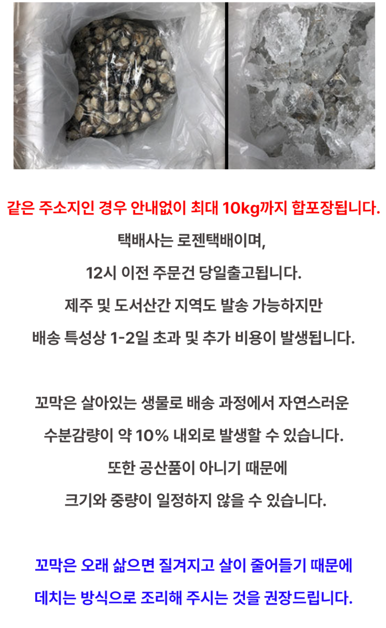 - 가공방식: 생조개