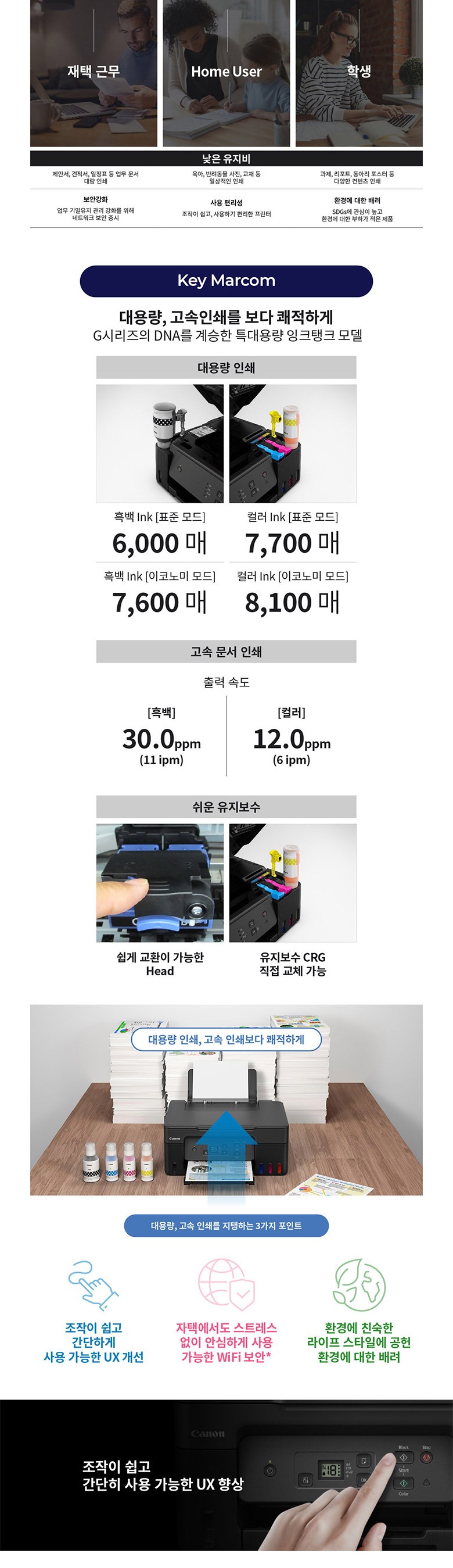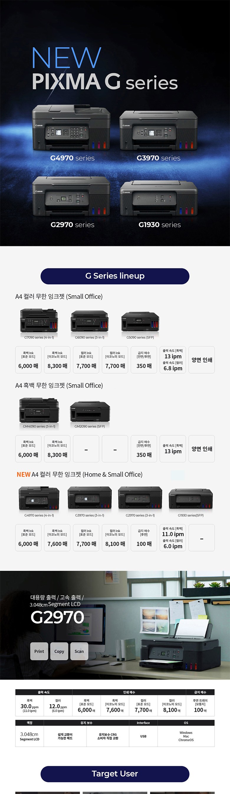 - 첫장 인쇄 시간: 9초(컬러 14초)