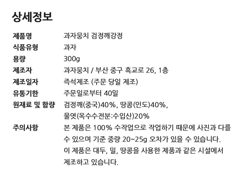 | 생산자 및 소재지 | 상품 상세페이지 참조 | 제조연월일, 소비기한 또는 품질유지기한 | 상품 상세페이지 참조 |