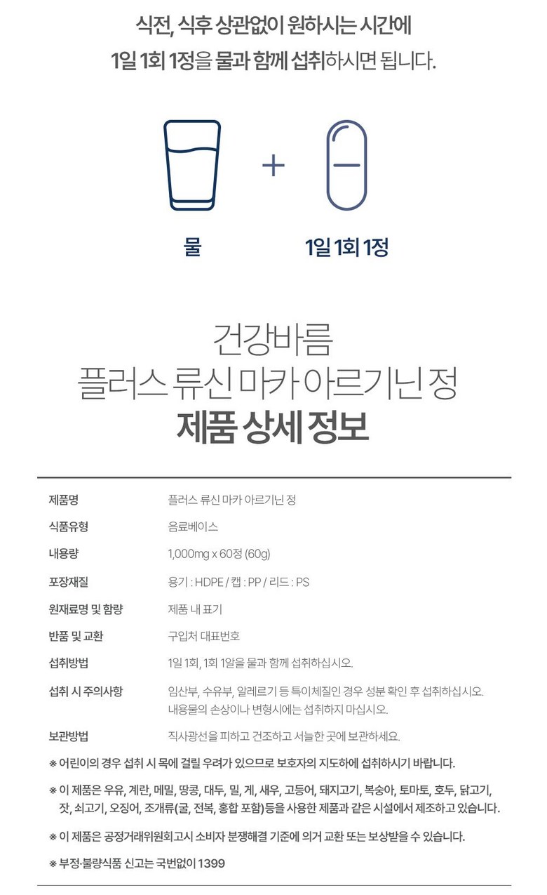 | 생산자 및 소재지 | 상품 상세페이지 참조 | 제조연월일, 소비기한 또는 품질유지기한 | 상품 상세페이지 참조 |