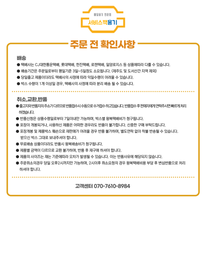 - ㆍ모니터 해상도의 차이로 인해 색상이나 이미지가 실제와 달라, 고객이 단순 변심으로 교환/반품을 무료로 요청하는 경우