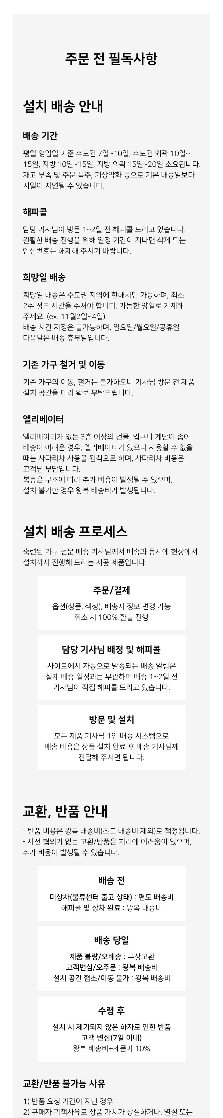 - ㆍ교환/반품에 관한 일반적인 사항은 판매자가 제시사항보다 관계법령이 우선합니다.