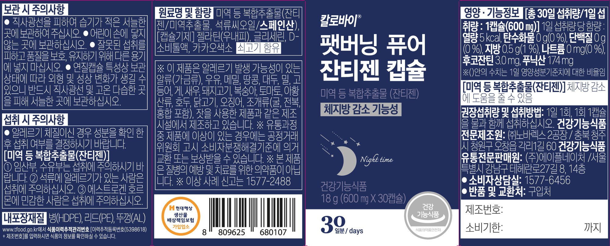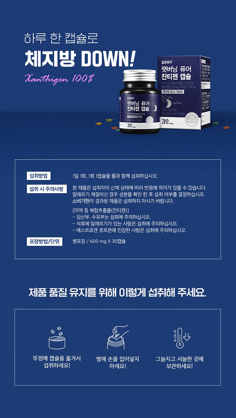 | 제품명 | 팻버닝 퓨어 잔티젠 캡슐 | 제조업소의 명칭과 소재지 | 컨텐츠 참조 |