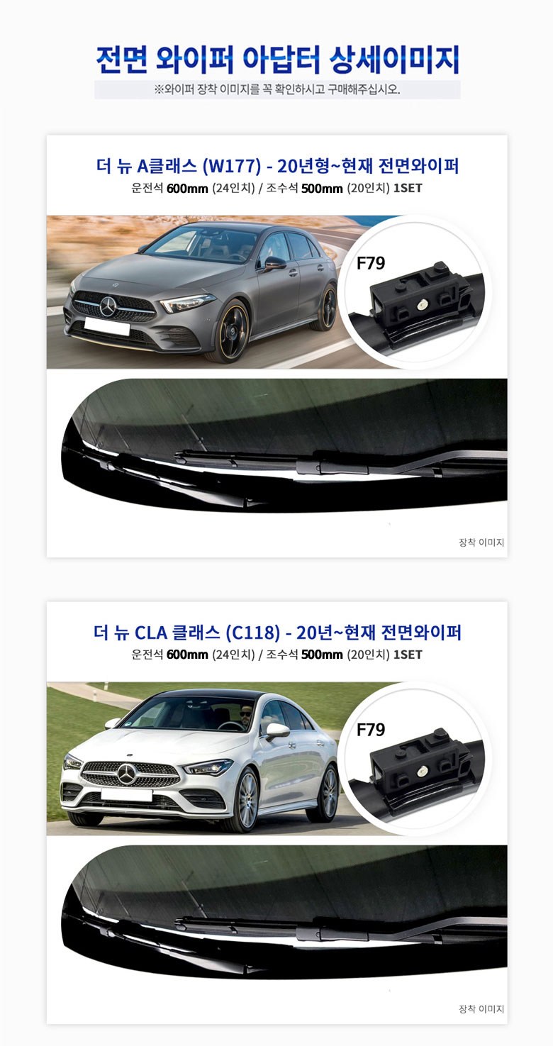 | 품명 및 모델명 | 레인윙스 벤츠 더뉴 A CLA클래스 전면 와이퍼 세트 W177 C118 | 동일모델 출시년월 | 업체미제공 |