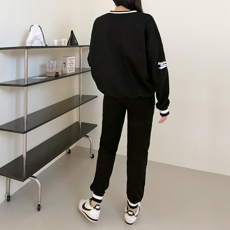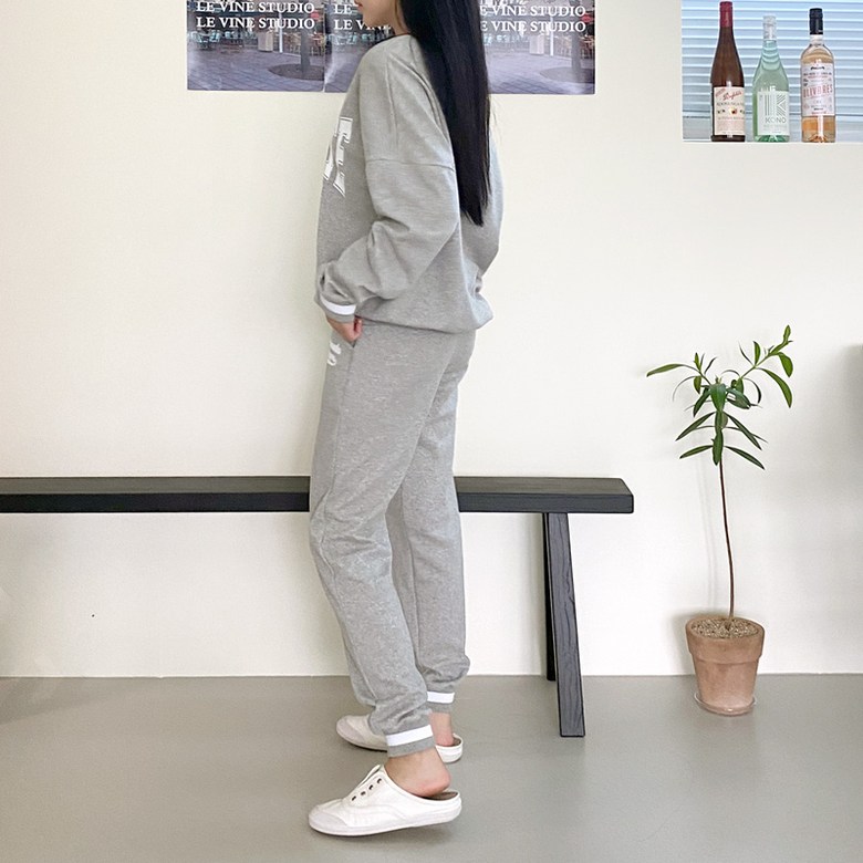 넉넉한 핏으로 멋스럽게 빠진 맨투맨과 여성스럽고 날씬해보이는 조거팬츠의 디자인!