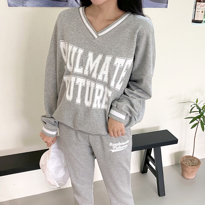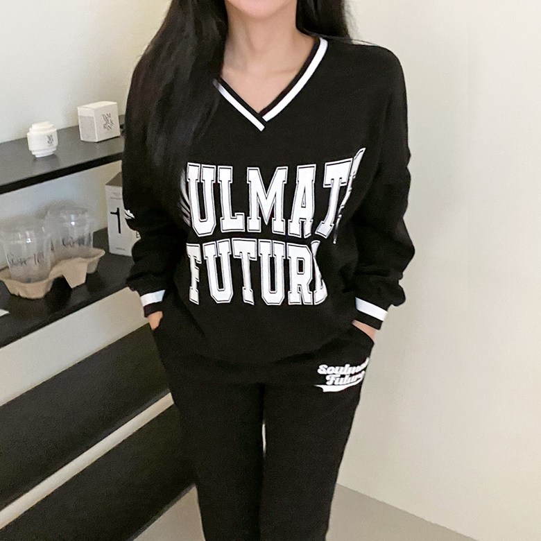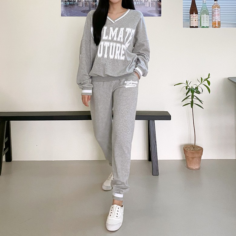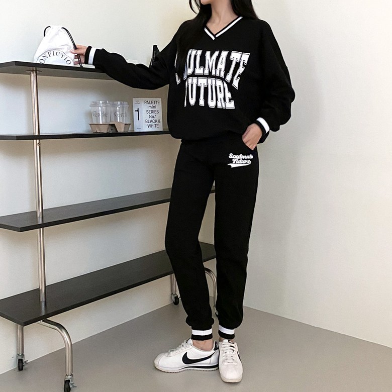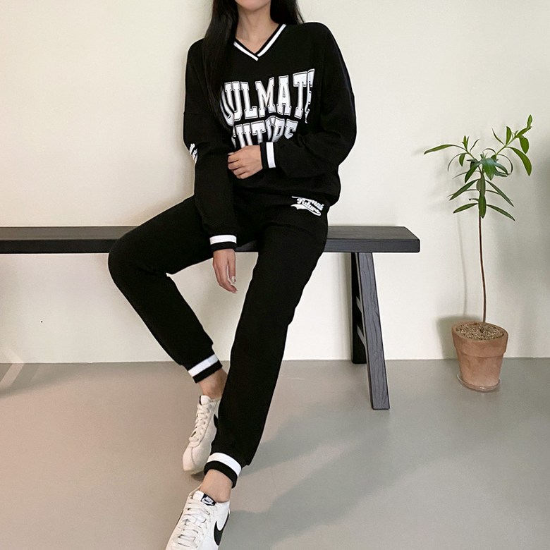 컬러감 핏감 넘나 예쁜 브이넥 맨투맨& 조거팬츠 환상조합!
