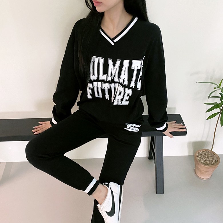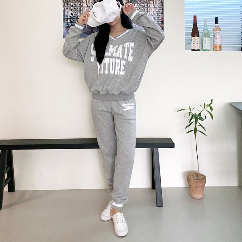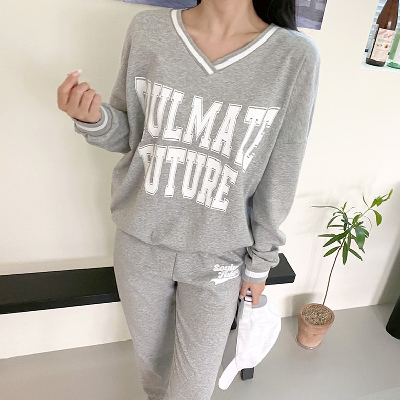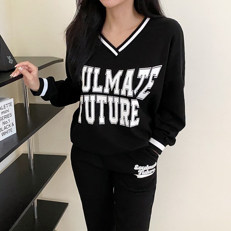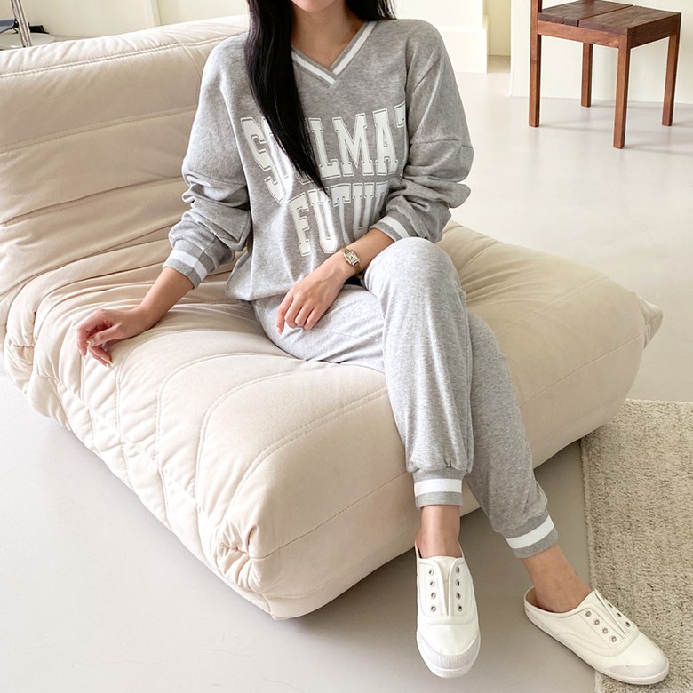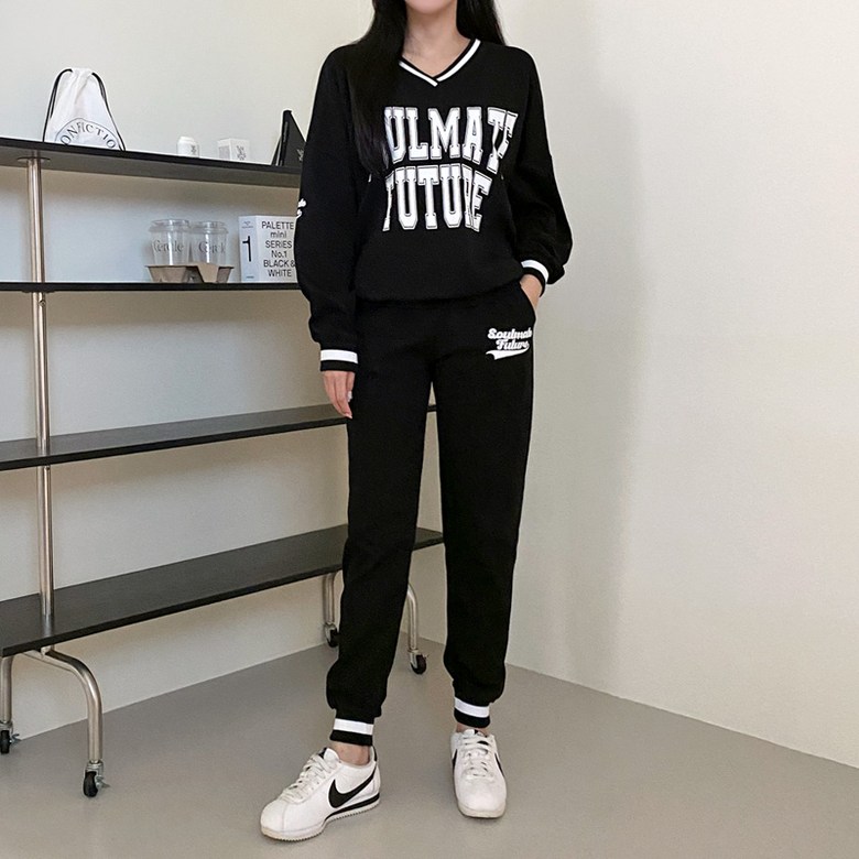컬러감 핏감 넘나 예쁜 브이넥 맨투맨& 조거팬츠 환상조합!