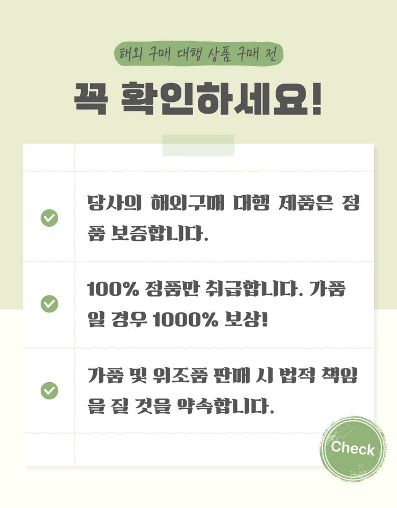 해외업체가 등록한 상품에 대해서는 법적 책임을 지지 않습니 다. 상품에 오류가 있을 경우, 상품문의에 남겨주시면 신속히 확인/처리 하도록 하겠습니다.