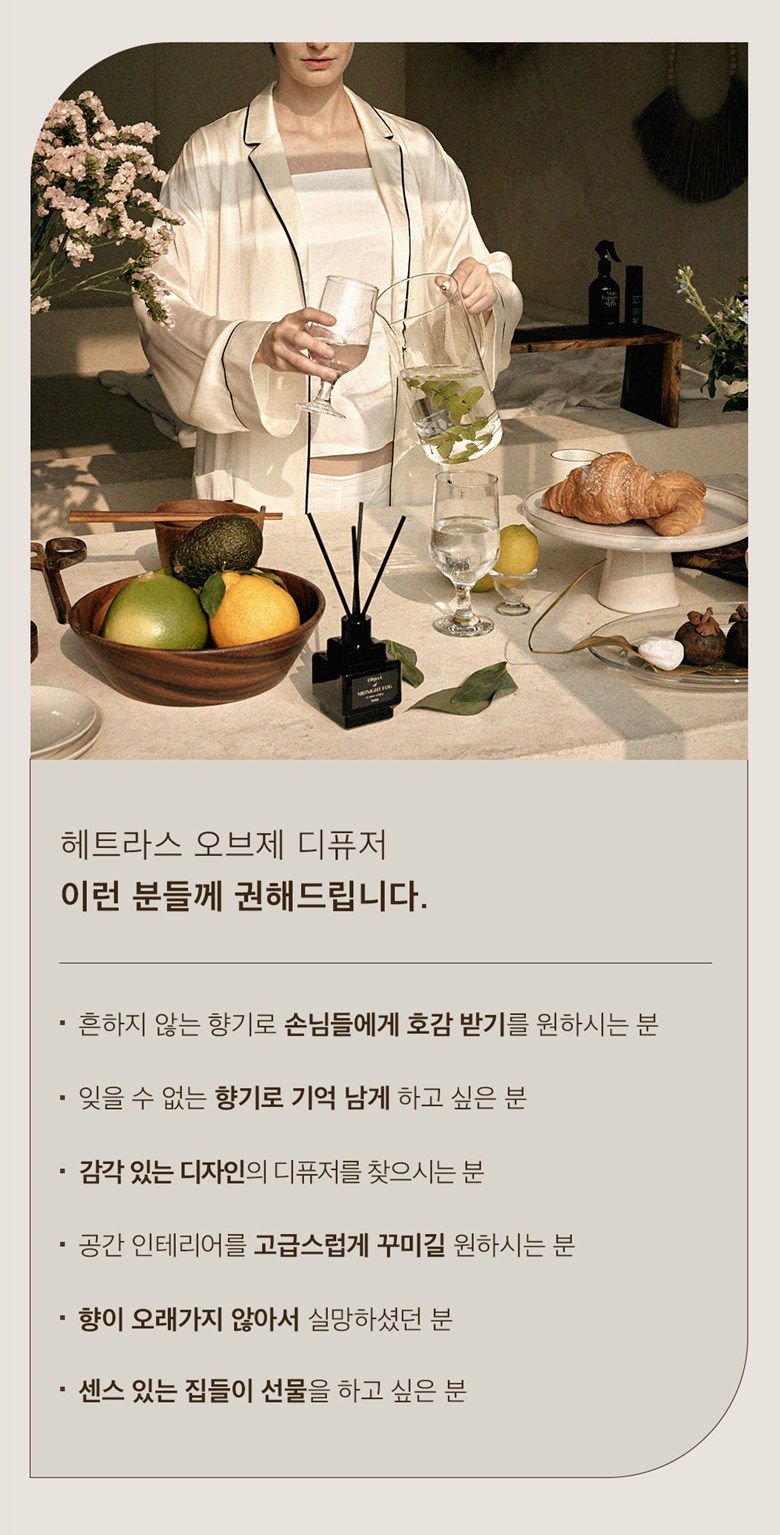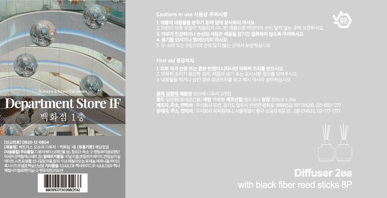 | 품목 및 제품명 | 방향제 / 헤트라스 오브제 디퓨저-백화점 1층 | 용도(표백제의 경우 계열을 함께표시) 및 제형 | 일반용(실내공간용) / 액체형 |