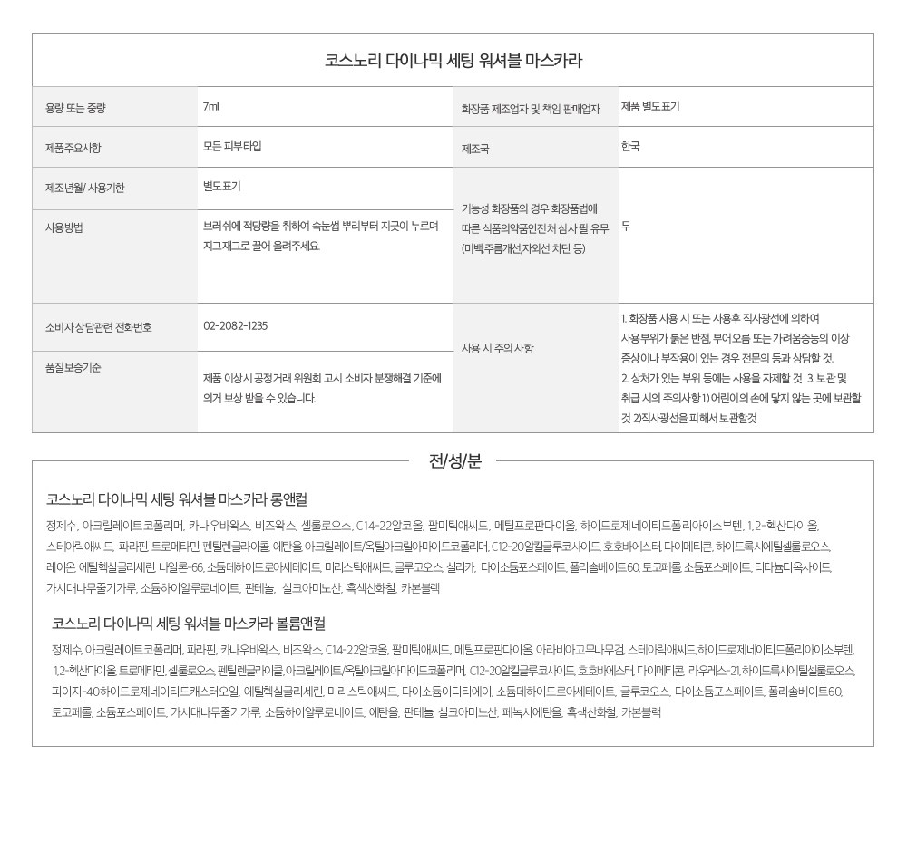 | 용량(중량) | 7ml | 제품 주요 사양 | 모든 피부용 |