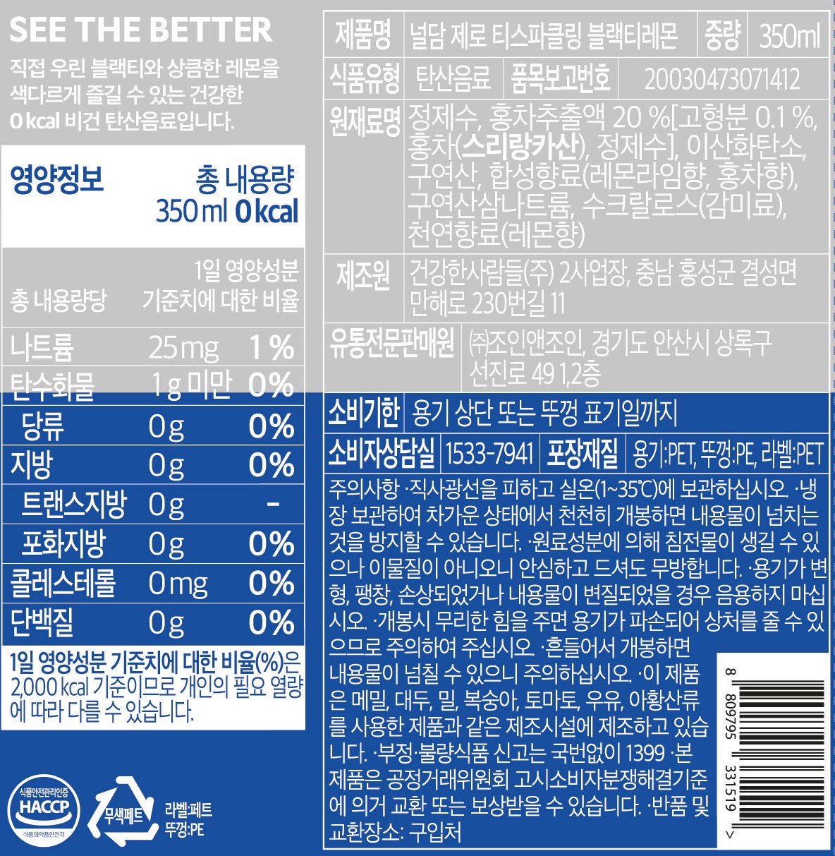 | 포장단위별 내용물의 용량(중량), 수량 | 350ml x 24개입, 1개 | 원재료명 및 함량 | 컨텐츠 참조 |