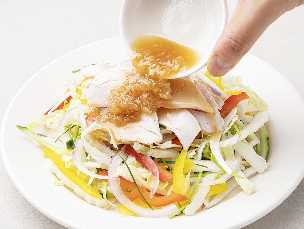 4. 닭가슴살은 먹기 좋게 찢고, 채소는 채 썰어주세요.