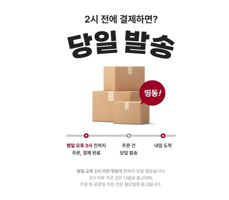 | 배송기간 | ㆍ도서산간 지역 등은 배송에 3-5일이 더 소요될 수 있습니다. - 천재지변, 물량 수급 변동 등 예외적인 사유 발생 시, 다소 지연될 수 있는 점 양해 부탁드립니다. | ||