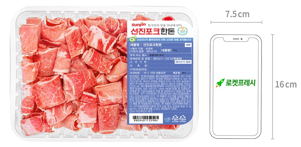 신선도를 유지하기 위해 MAP(Modified Atmospheres Packaging) 기법으로 포장했어요. 용기 내에 산소와 이산화탄소를 채워 고기의 맛과 품질을 유지합니다.