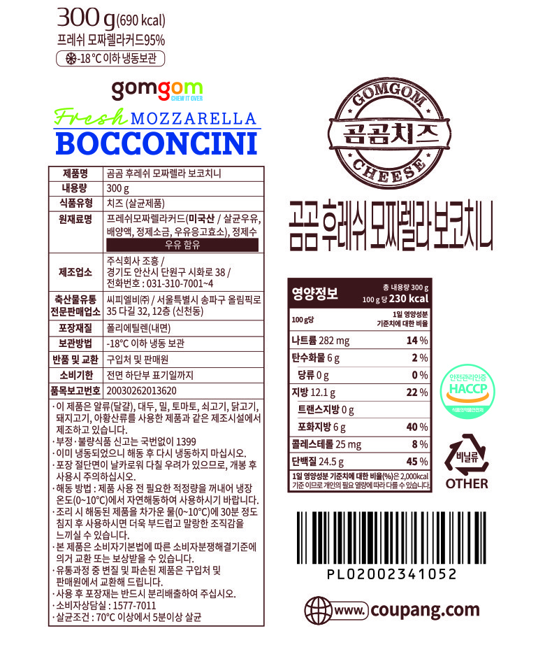 | 포장단위별 내용물의 용량(중량), 수량 | 300g, 4개 | 원재료명 및 함량 | 컨텐츠 참조 |