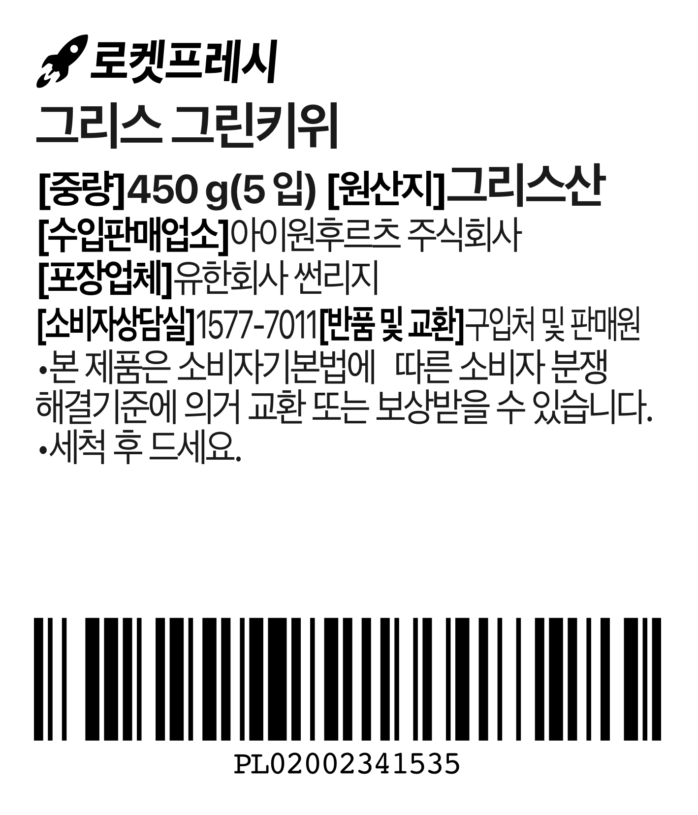 | 품목 또는 명칭 | 그리스산 키위 | 포장단위별 내용물의 용량(중량),수량,크기 | 450g |