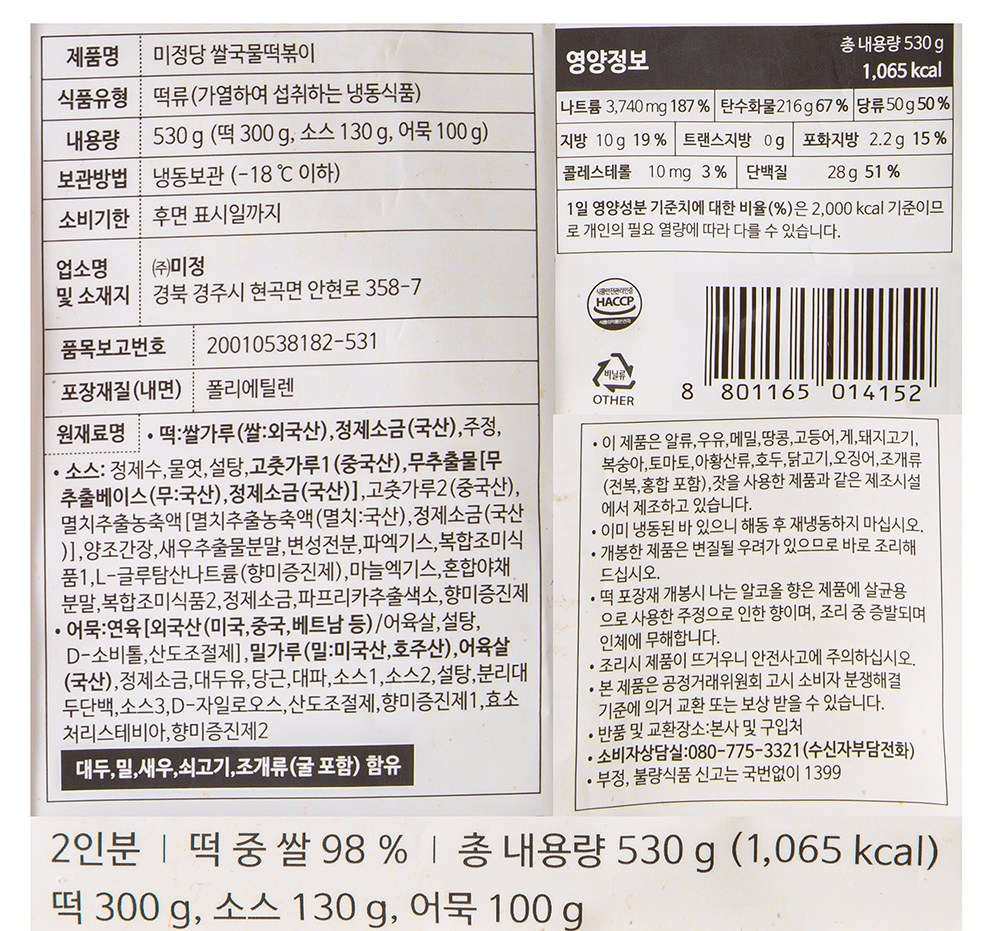 - 섭취 분량: 2인분