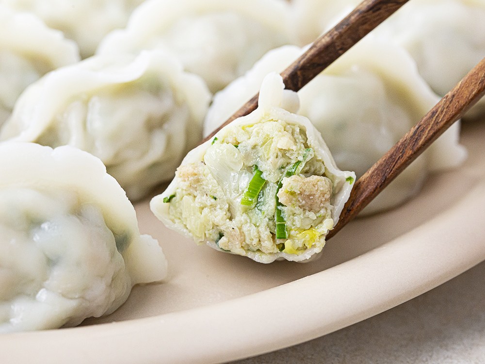 돼지고기의 육즙을 즐기기 좋은 만두예요. 얇은 만두피와 양배추, 두부 등이 어우러져 다채로운 식감을 선사하지요. 한입 먹으면, 고소하고 담백한 풍미가 입안을 가득 채운답니다. 오래 끓여도 야들야들하니 물만두로 즐기거나, 만둣국에 넣어 즐겨보세요.