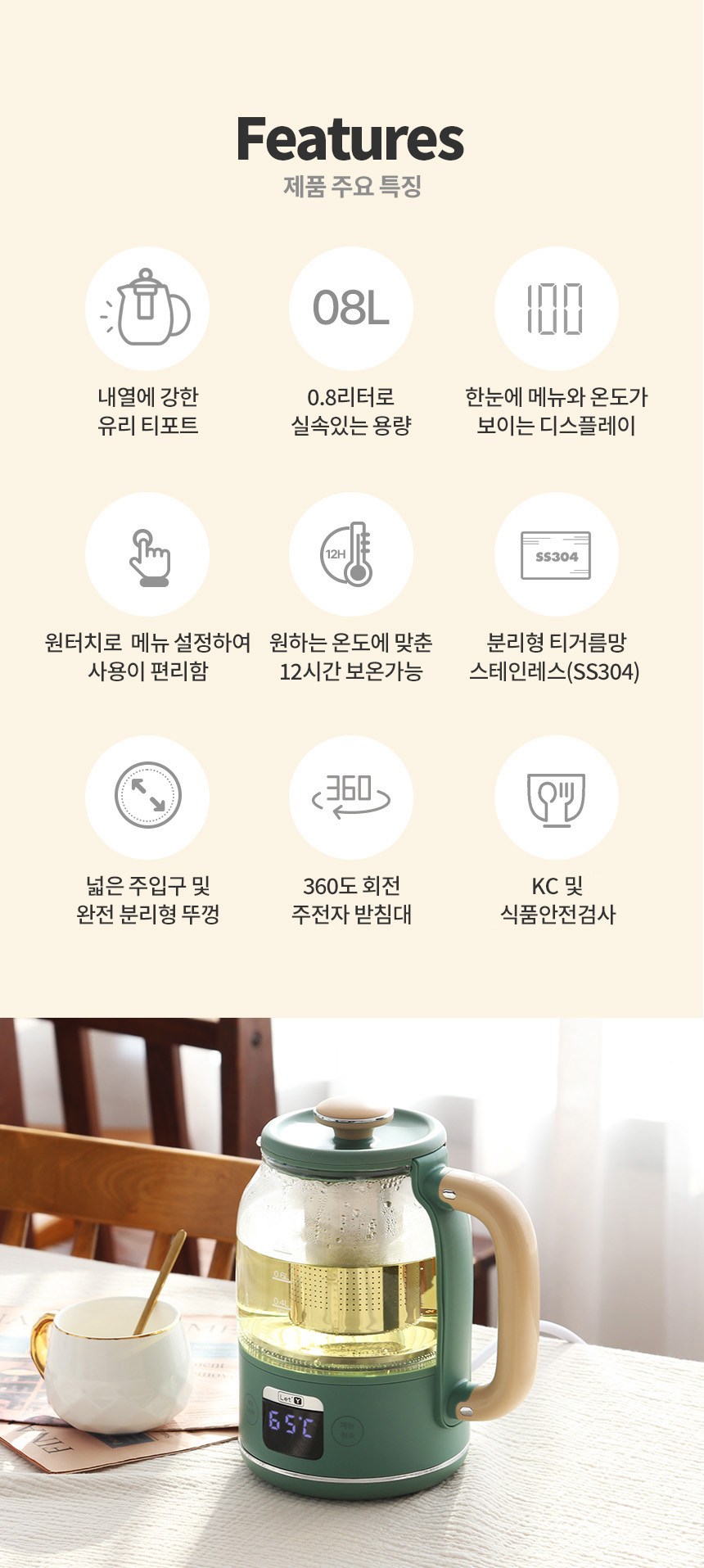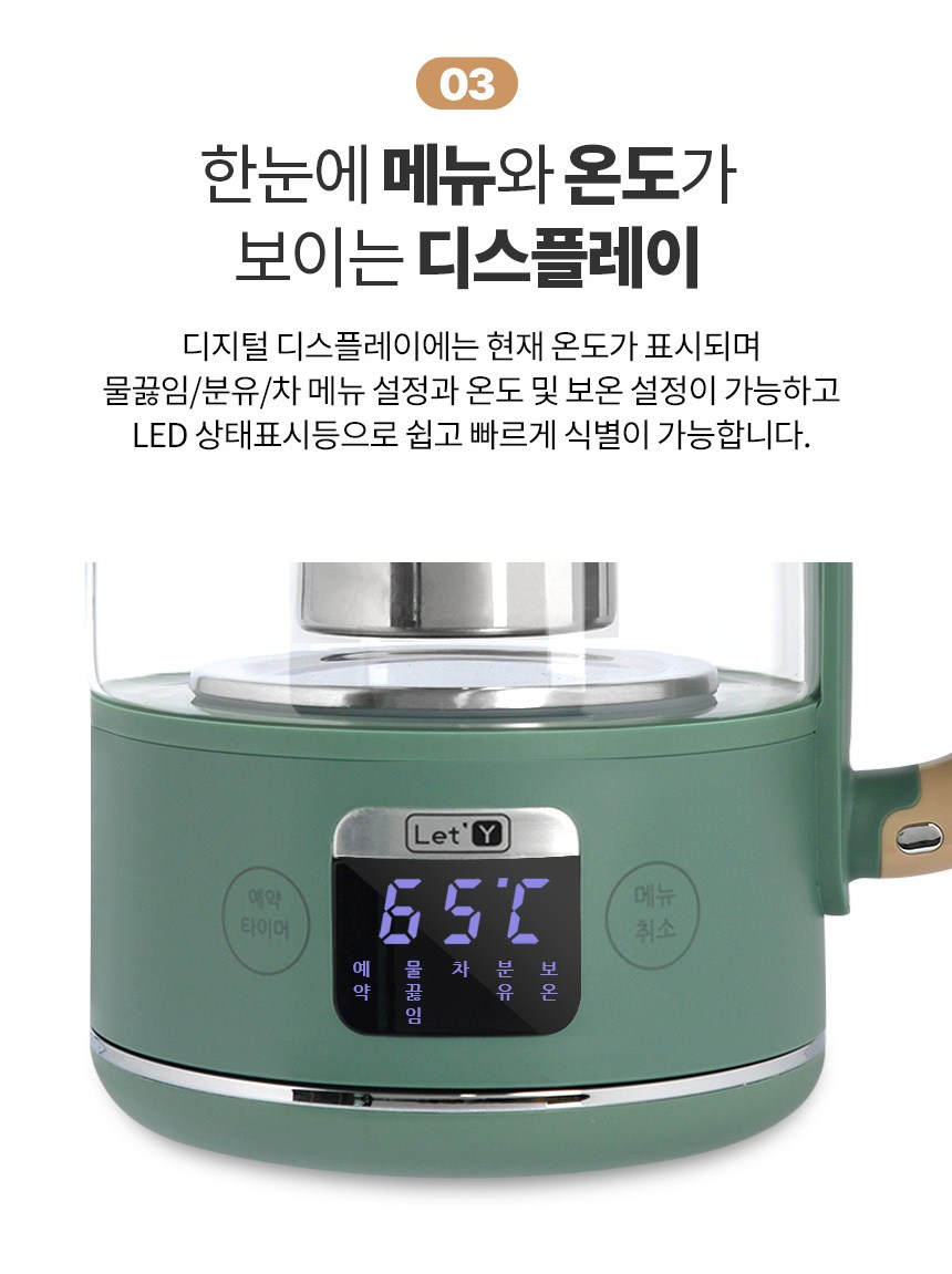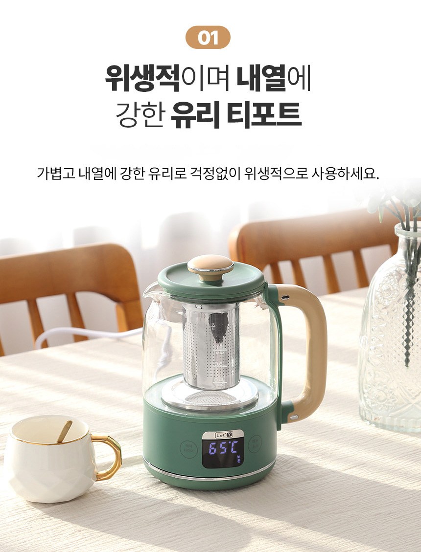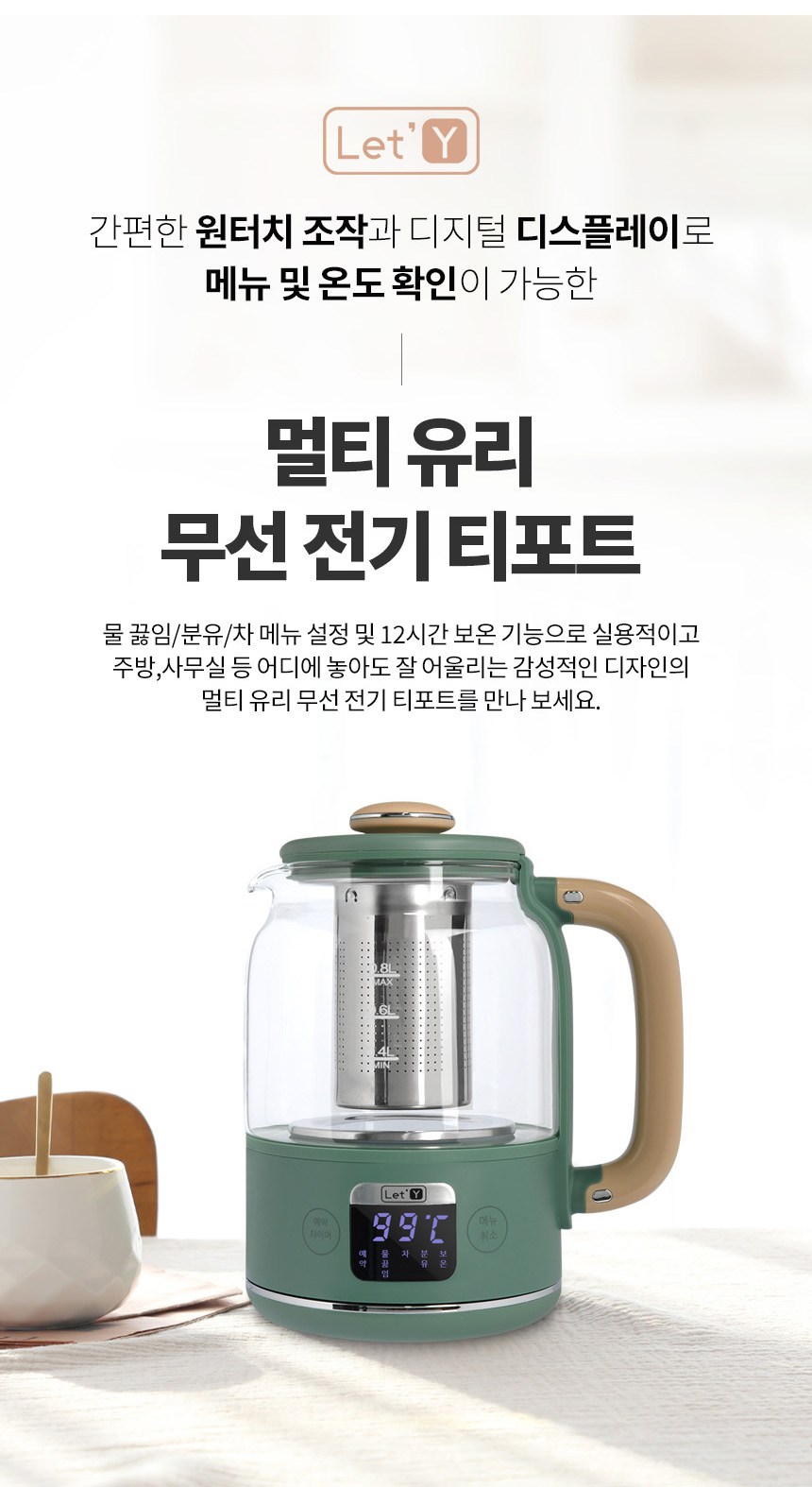 레티 보온 온도조절 멀티 유리 무선 전기 티포트