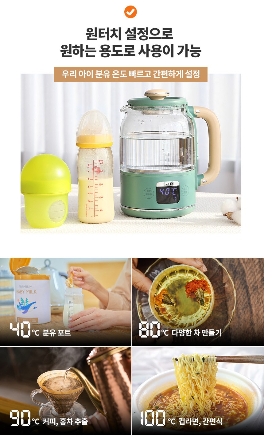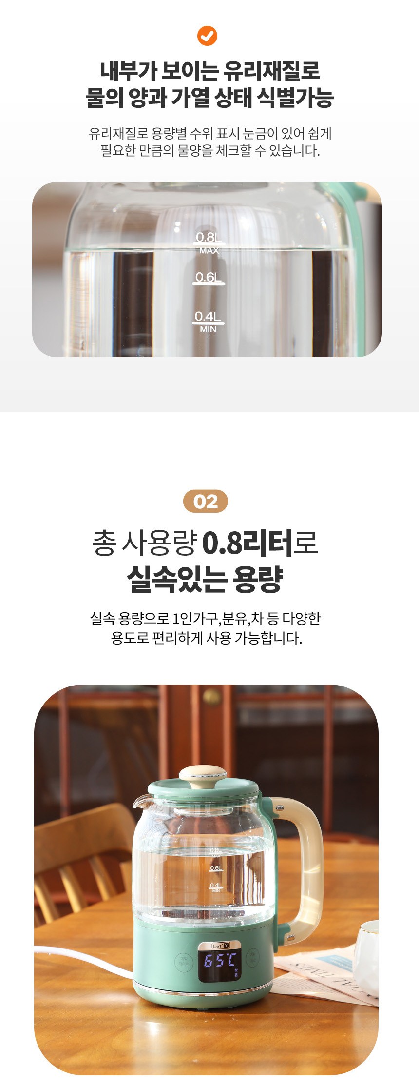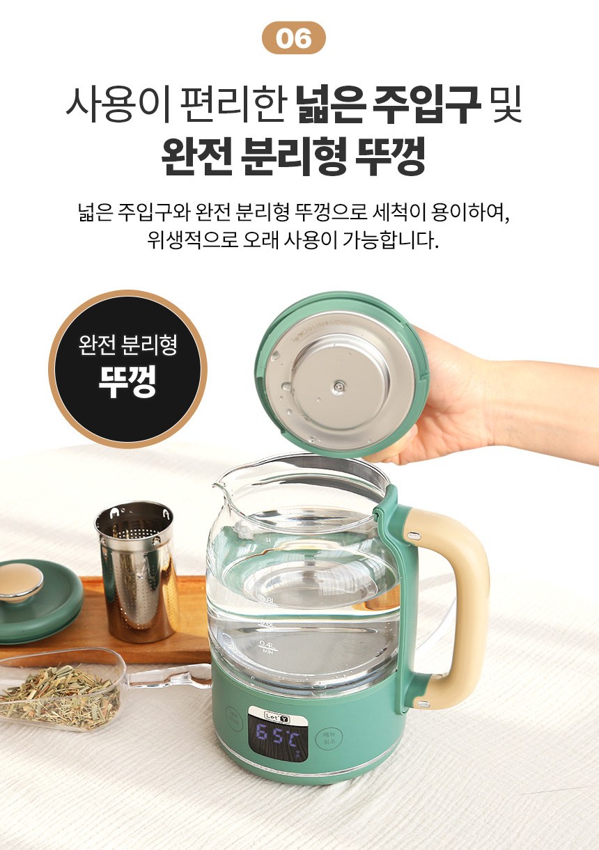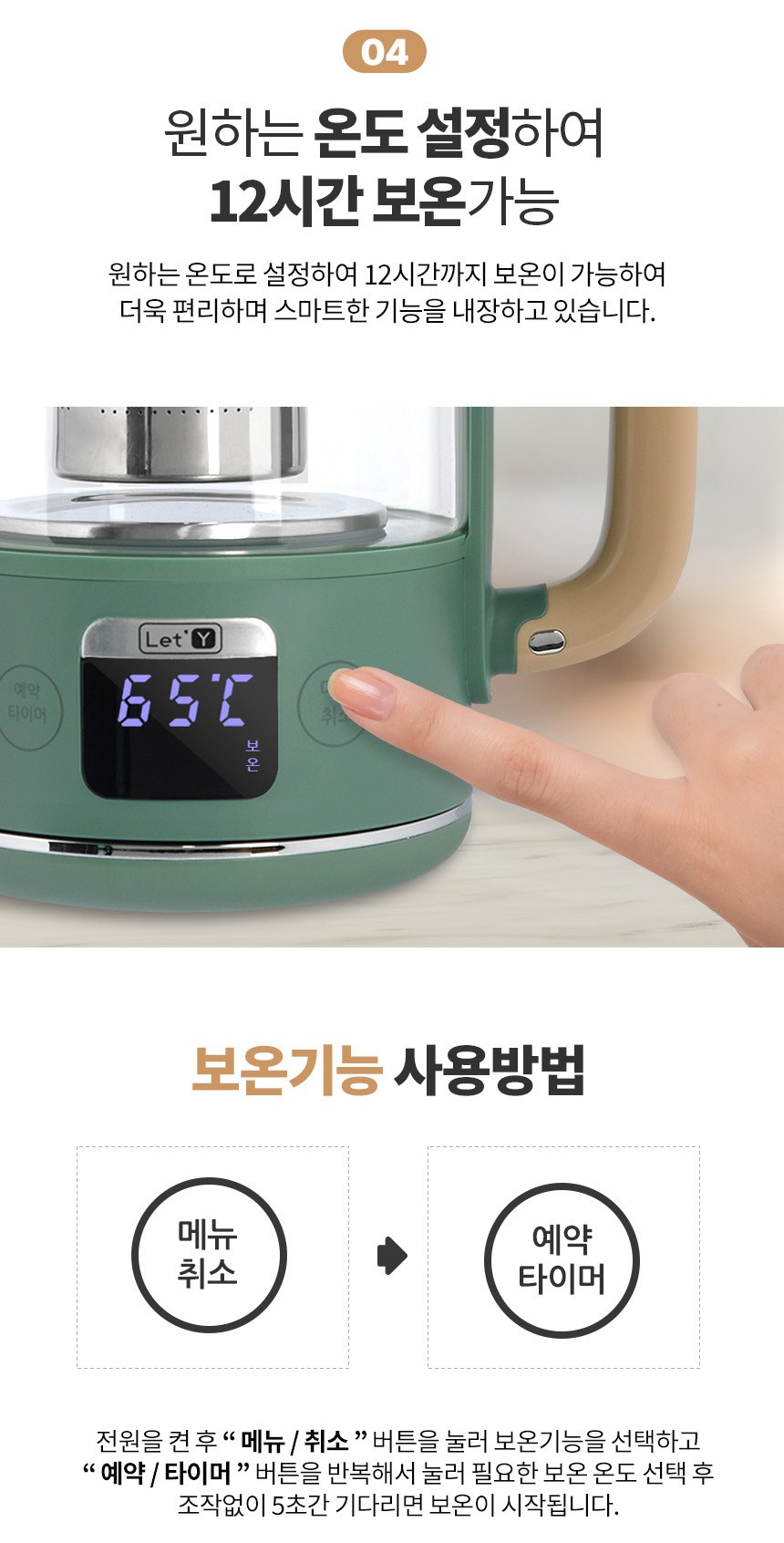 레티 보온 온도조절 멀티 유리 무선 전기 티포트