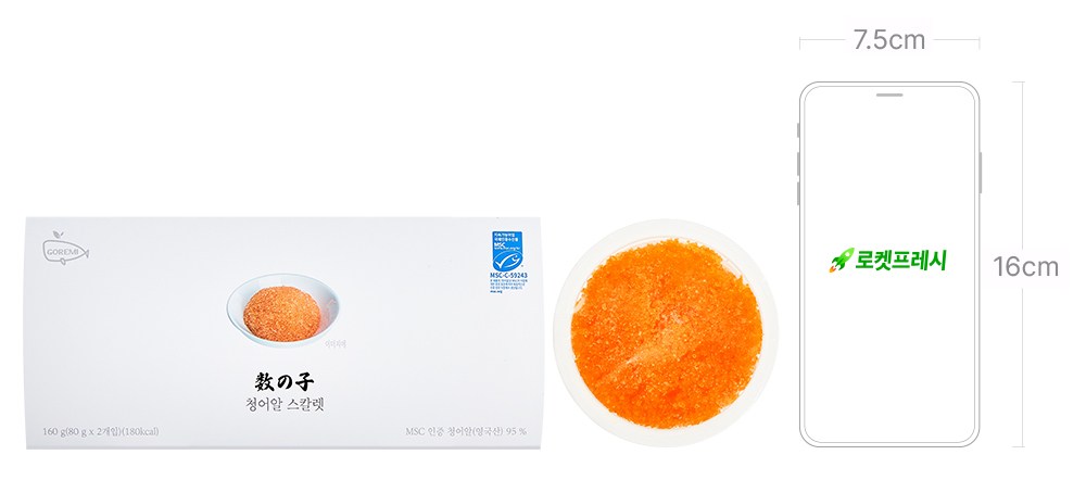 토도독 터지는 식감과 짭짤한 맛을 선사하는 청어알 스칼렛입니다. 스칼렛은 다홍색을 뜻하는 영어인데요. 이름처럼 선명한 붉은빛이 주먹밥, 계란말이, 초밥 등에 더해지면 보는 것만으로 식욕이 돋워지죠. 청주와 과실주를 사용해 비린 맛을 잡고, 감칠맛은 더했어요. 해양 생태계를 보호하는 방식으로 얻어 MSC 인증을 받은, 특별한 청어알을 만나보세요.