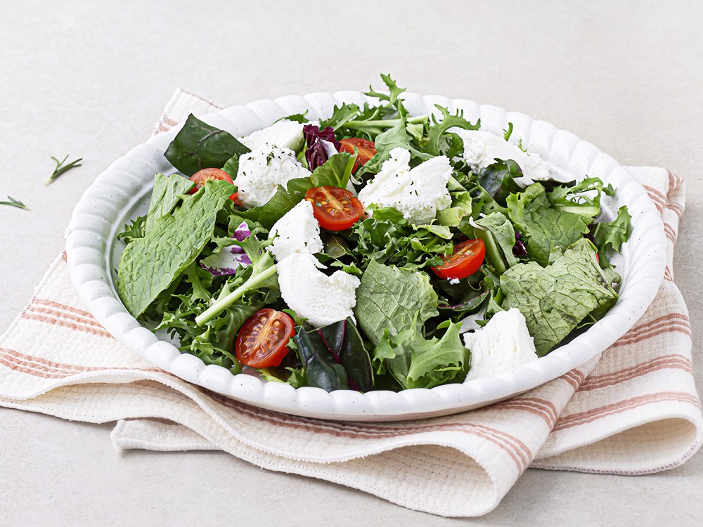 3. 샐러드 채소 위에 리코타 치즈를 올려주세요.