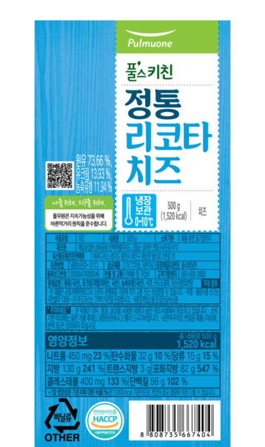 해동할 필요 없는 리코타 치즈