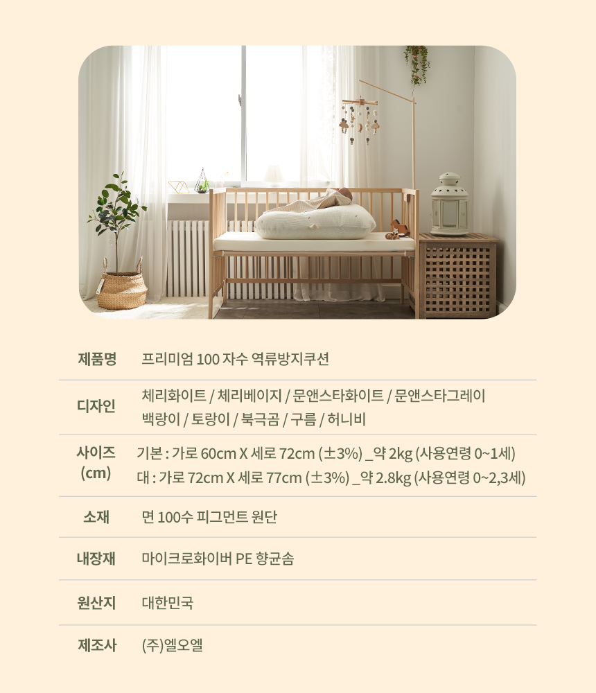 | 품명 및 모델명 | 롤베이비 프리미엄 100 자수 신생아 역류방지 수유쿠션 기본 | KC 인증정보 | CB011H077-0005 |