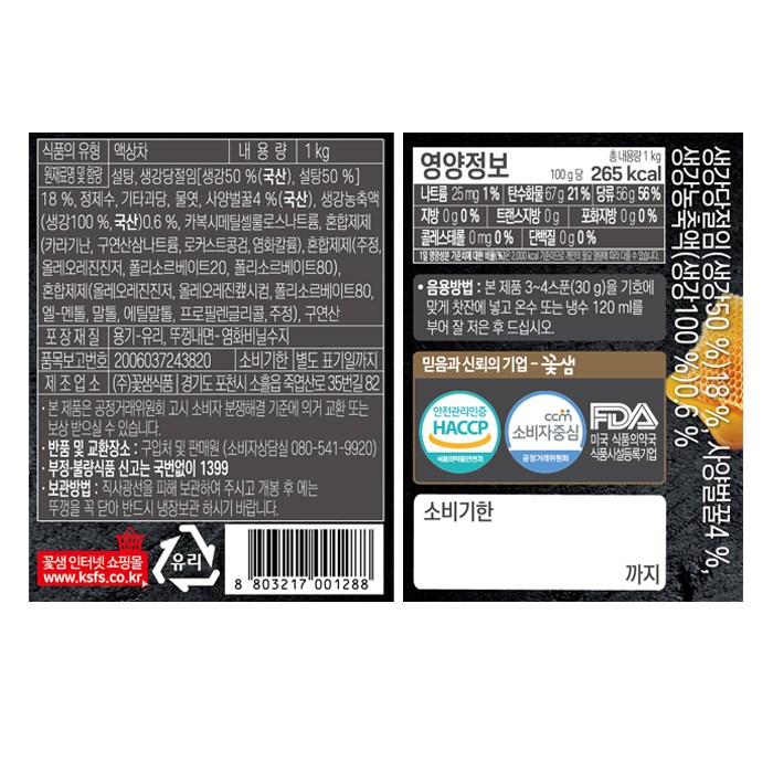 | 제품명 | 꿀생강차 | 식품의 유형 | 컨텐츠 참조 |
