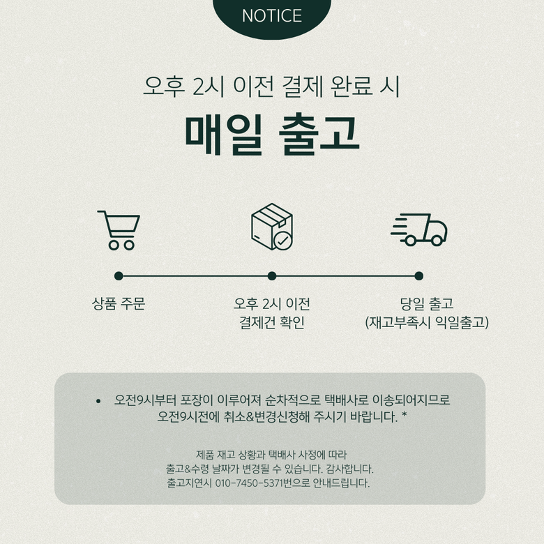 토욜/공휴일 택배발송(읍,면 제외) 합니다. 일욜 휴무.
